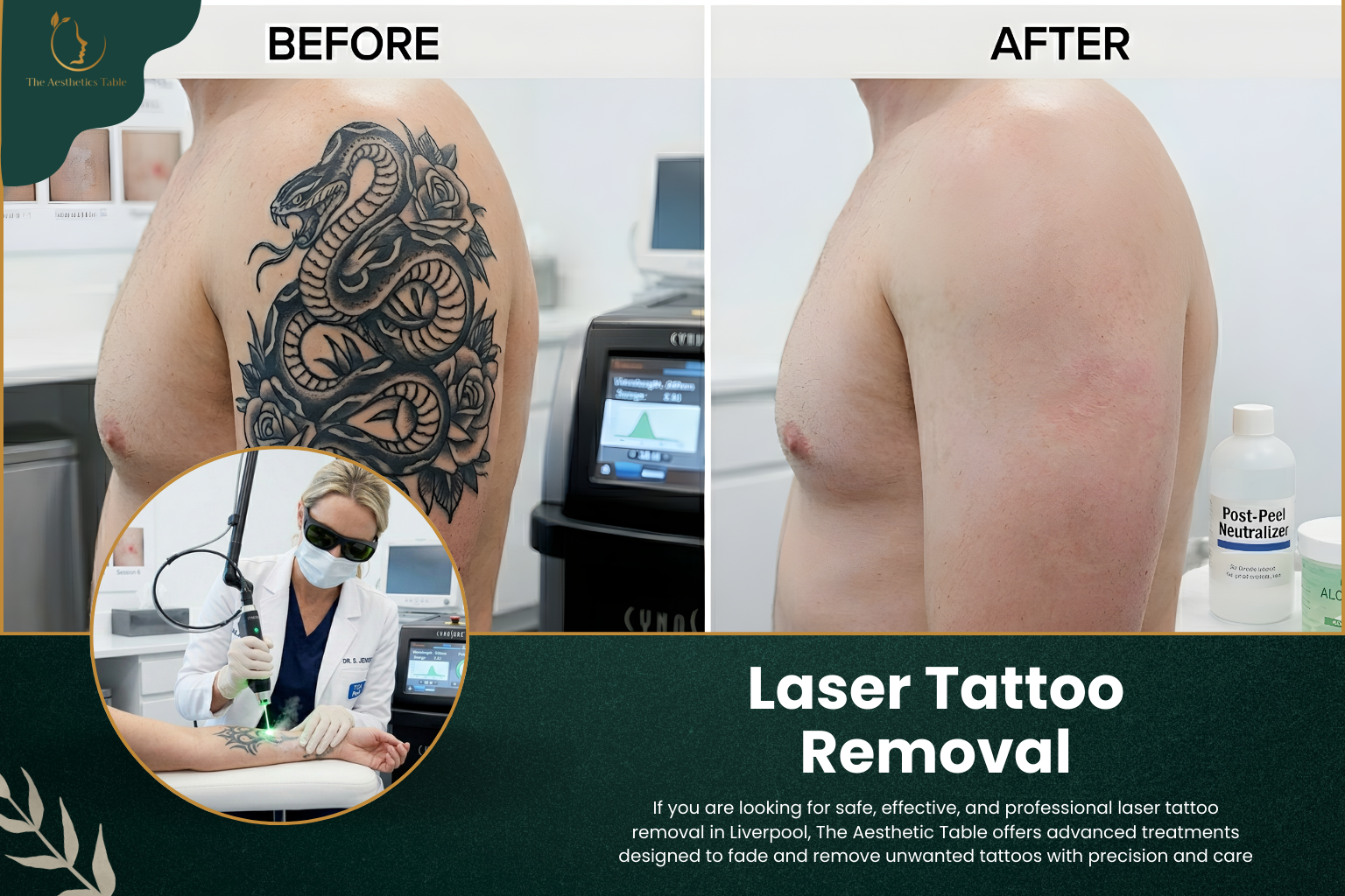 Choosing the right clinic for laser tattoo removal in Liverpool is essential for both safety and results. At The Aesthetic Table, we focus on: